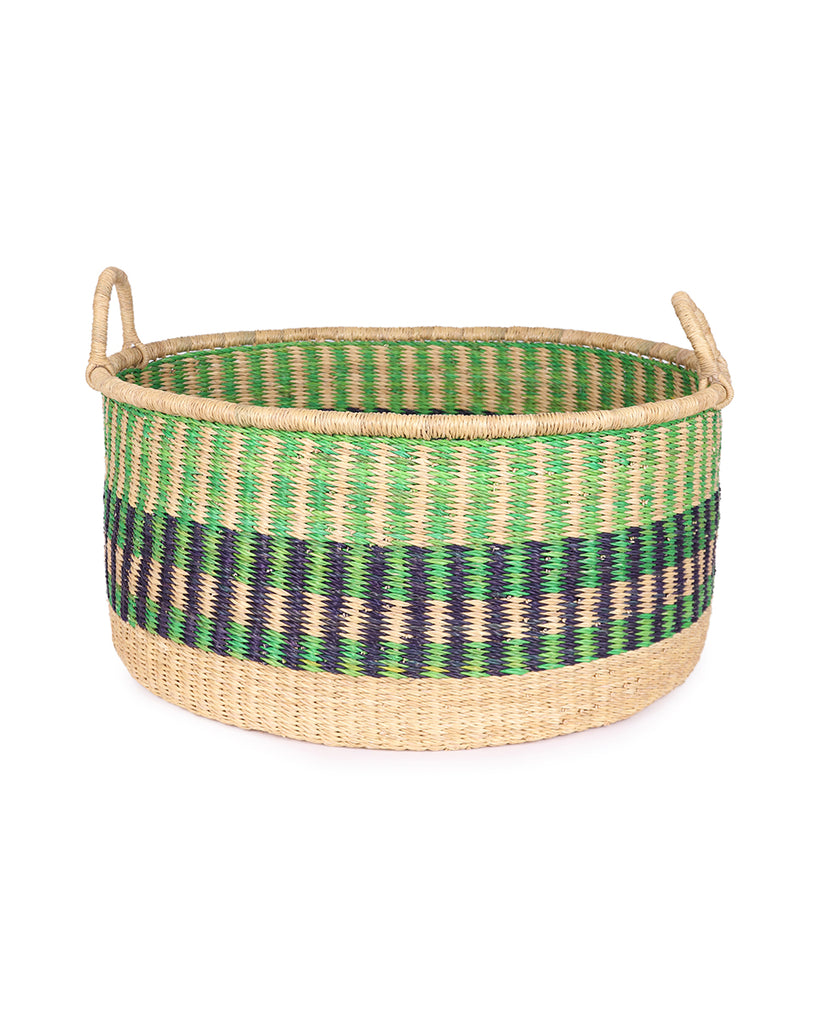 ABANDZE: Large Green & Navy Floor Storage Basket with Handles