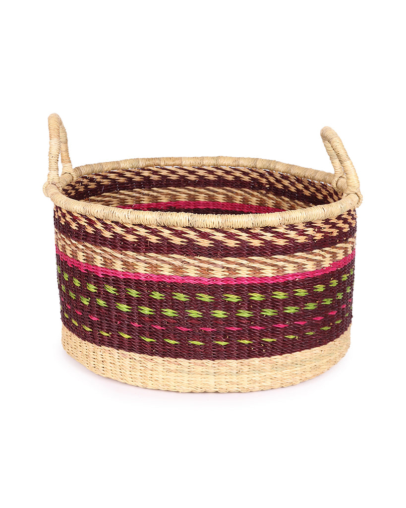 ABRAFO: Small Brown, Pink & Green Floor Storage Basket with Handles
