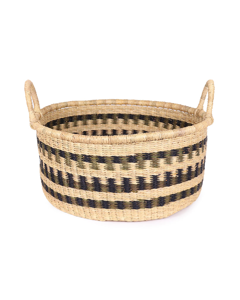 ACHIASE: Medium Green & Black Floor Storage Basket with Handles