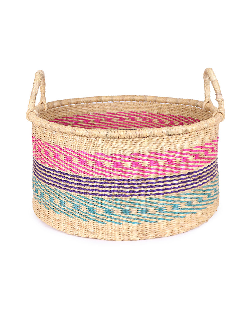 ACHIASE: Medium Pink & Blue Floor Storage Basket with Handles