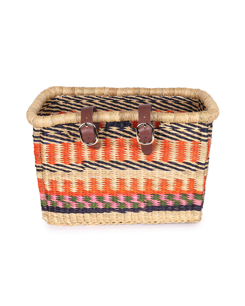Give your two wheels an instant style upgrade with the ultimate bike accessory: the bicycle basket. Our bright and beautiful bike baskets and children’s bike baskets are designed in-house by The Basket Room and hand woven from local veta vera grass in Northern Ghana. Looking for something unique to treat your trusty bicycle? We now have a stunning range of one off designs in a mix of our classic rectangle and oblong shape! Be quick, these are only made once so when they are gone, they’re gone!