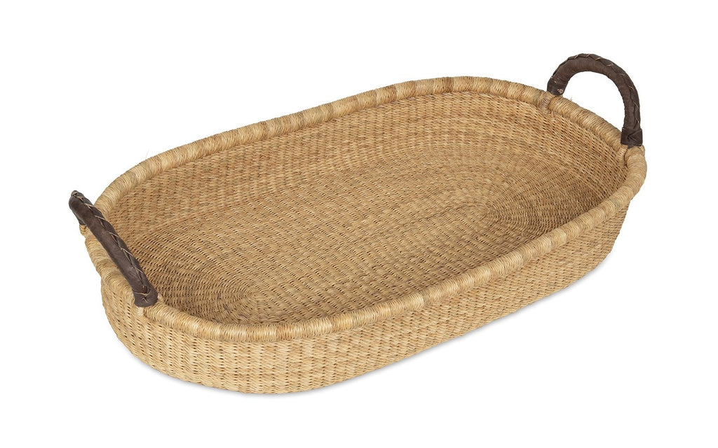 Meet our award winning Moses baskets: winners of the bronze award for best baby crib, pod or Moses design in the Junior Design Awards 2021. Keep a close eye on baby as they nap and do those nappy changes in comfort and style with our exquisite woven baby baskets. These hand woven Moses baskets and baby changing baskets are ethically hand made in Northern Ghana: nine different moses basket designs finished in sustainably-sourced goat’s leather, and a choice of two natural elephant grass changing baskets, with or without leather-bound handles. We think you’ll be hard pressed to find an ethical baby gift that brings more joy and delight than one of these babies.