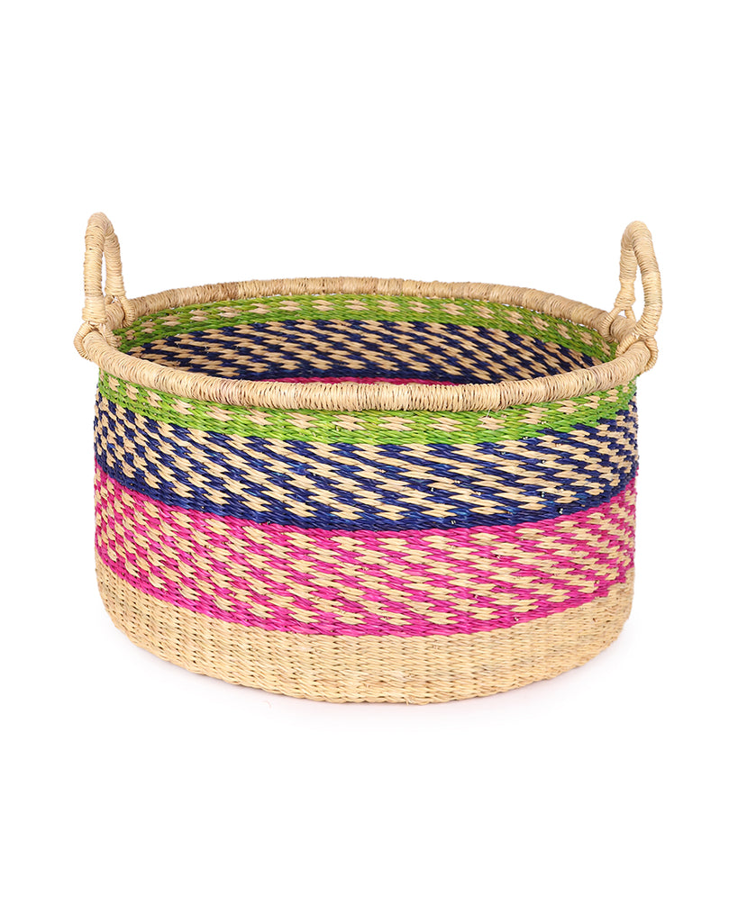 AMPENKRO: Small Pink, Blue & Green Floor Storage Basket with Handles