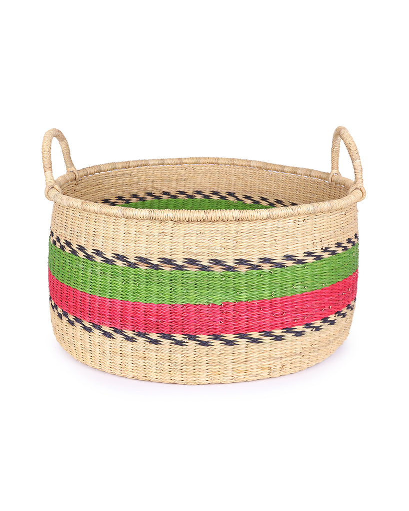 ANYINABRIM: Large Green & Red Floor Storage Basket with Handles
