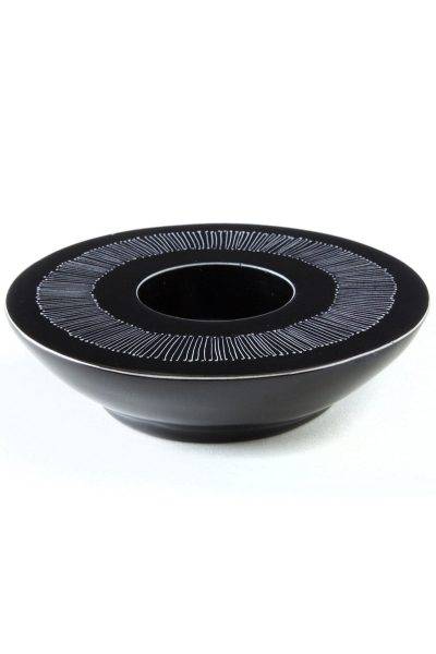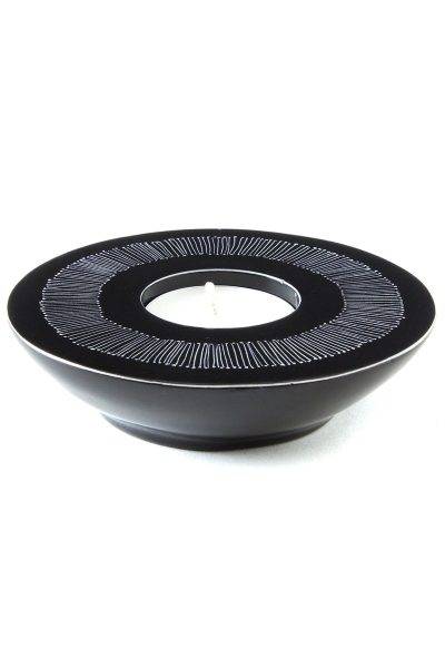 Black Fine Line Round Soapstone Tea Light Candle Holder