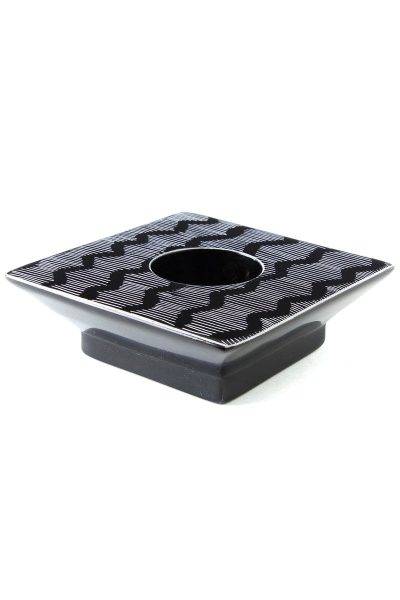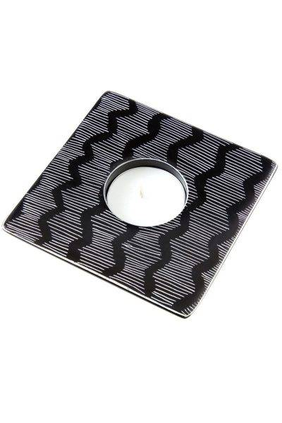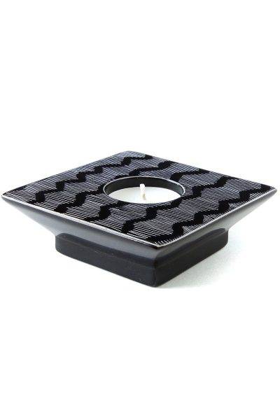 Black Fine Line Square Soapstone Tea Light Candle Holder