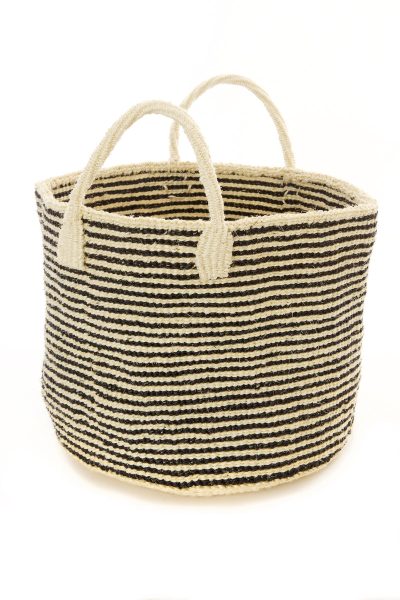 Rural Kamba women living near Kitui, Kenya, hand weave these classic totes from tough sisal fibers, in alternating rows of inky black and natural white. Sisal grows well in the semi-arid climate of eastern Kenya, and its spiky leaves contain long fibers that can be extracted for weaving. Simple woven sisal handles make this a 100% sustainable accessory.