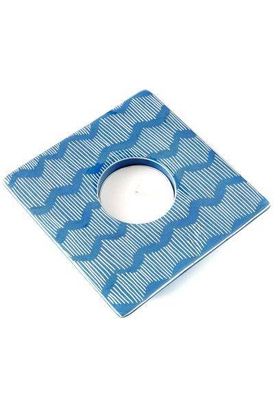 Blue Fine Line Square Soapstone Tea Light Candle Holder