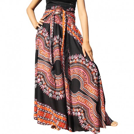 Bohemian Black Dashiki Long Skirt