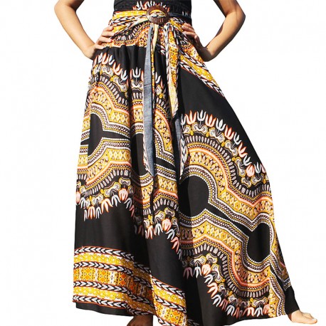 Bohemian Yellow and Black Dashiki Long Skirt