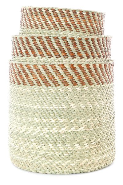 Sold singly, available in three sizes. Because these baskets are woven by hand, each will vary slightly.