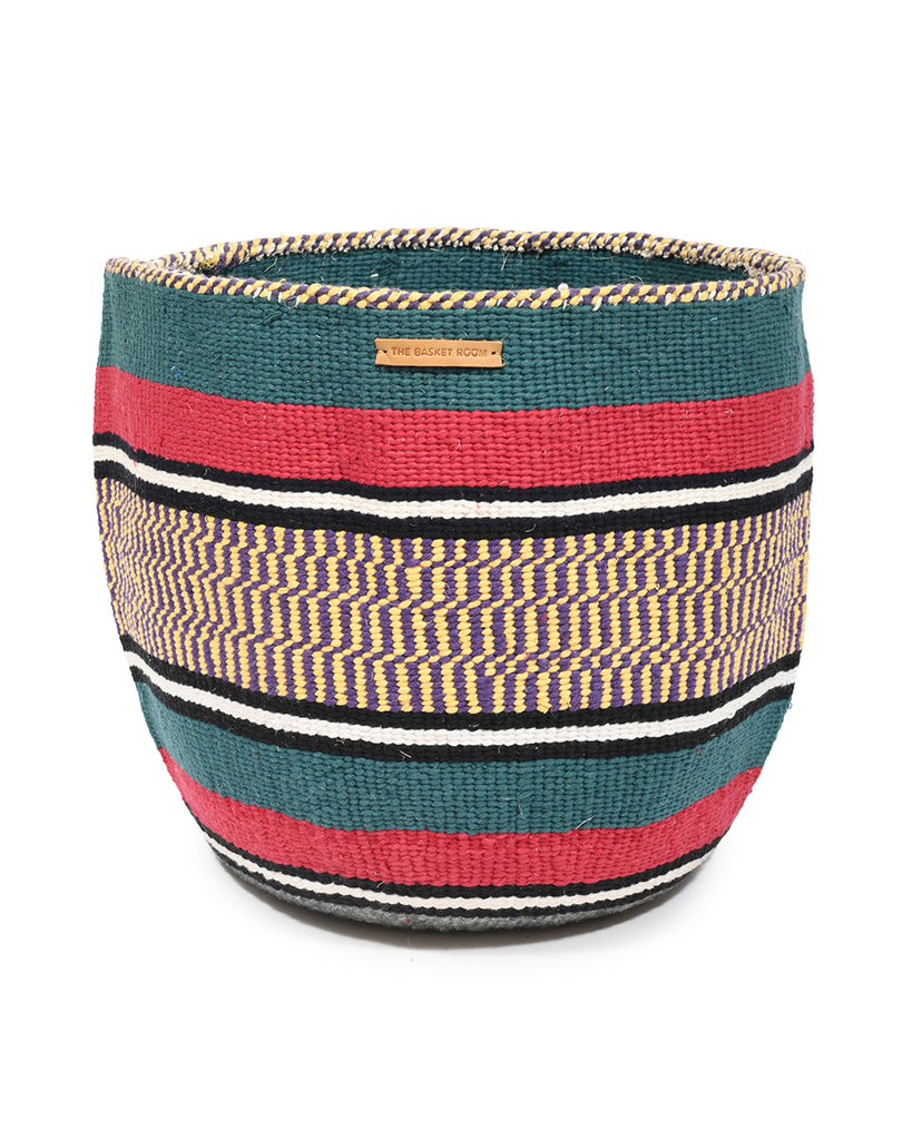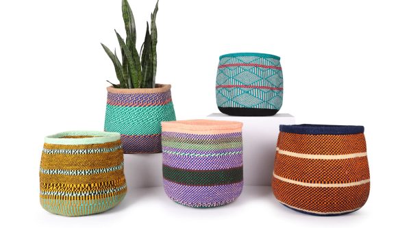 Check out our most vibrant collection of wool and sisal baskets, hand woven by people from the Kamba tribe in Kenya. These African woven baskets feature bold, geometric patterns inspired by tribal designs and were traditionally woven by mothers as wedding gifts for their daughters. Today these colourful storage baskets can be put to good use all over the home: as knitting baskets, large planters and laundry baskets, or as hampers for shoes, toys, kindling – or even your yoga mats and blankets!