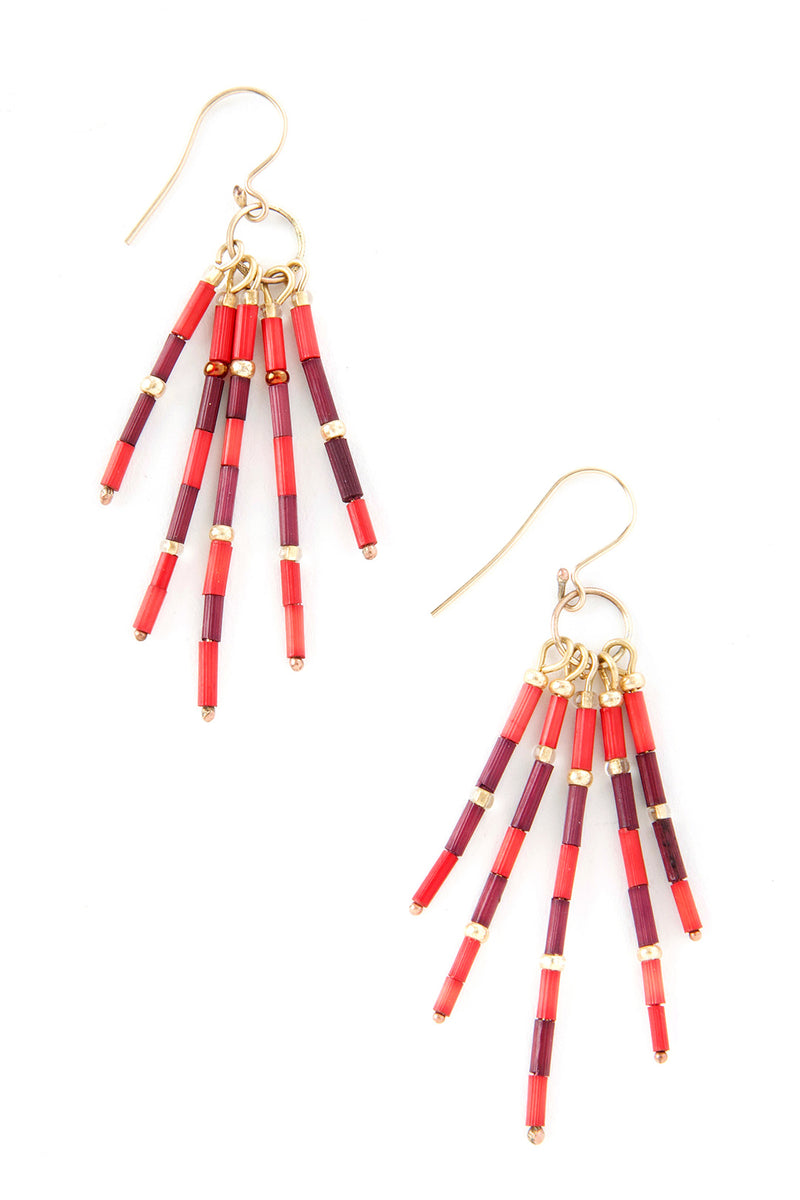 Crimson Shuka Zulugrass Fringe Earrings