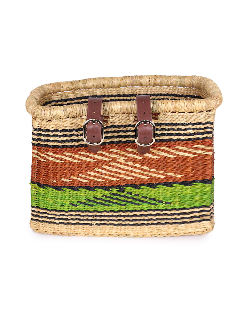 Give your two wheels an instant style upgrade with the ultimate bike accessory: the bicycle basket. Our bright and beautiful bike baskets and children’s bike baskets are designed in-house by The Basket Room and hand woven from local veta vera grass in Northern Ghana. Looking for something unique to treat your trusty bicycle? We now have a stunning range of one off designs in a mix of our classic rectangle and oblong shape! Be quick, these are only made once so when they are gone, they’re gone!