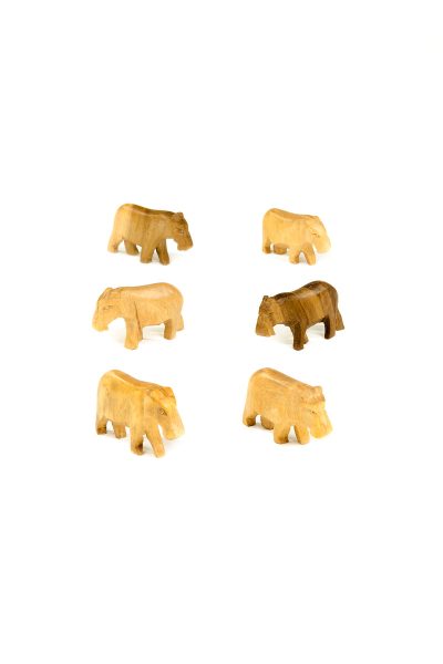 Kenyan artisans hand carve sweet safari animal miniatures from pale jacaranda wood. An inexpensive gift that appeals to many, our handcrafted wooden hippo keepsakes are sold as a set of twelve.