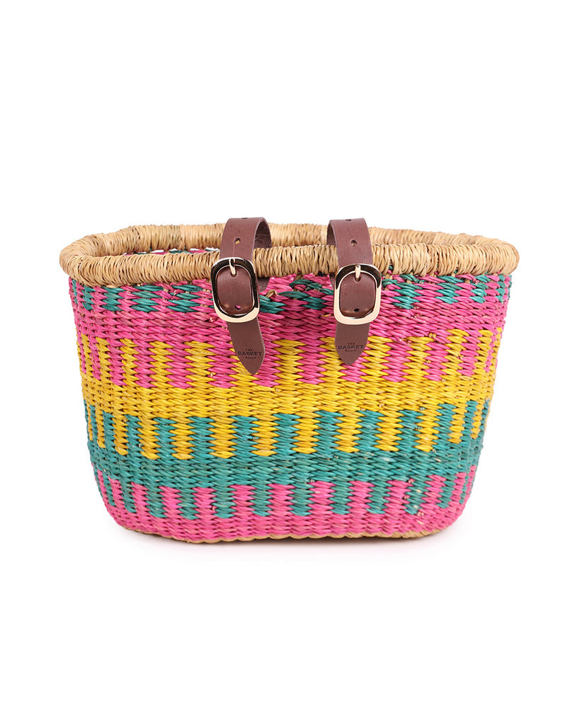 Give your two wheels an instant style upgrade with the ultimate bike accessory: the bicycle basket. Our bright and beautiful bike baskets and children’s bike baskets are designed in-house by The Basket Room and hand woven from local veta vera grass in Northern Ghana. Looking for something unique to treat your trusty bicycle? We now have a stunning range of one off designs in a mix of our classic rectangle and oblong shape! Be quick, these are only made once so when they are gone, they’re gone!