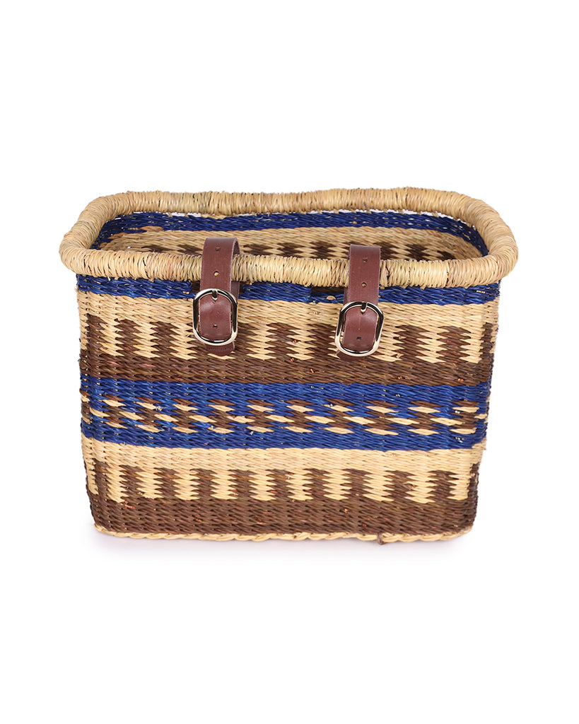 ESSAMAN: Blue & Brown Rectangular Bike Basket