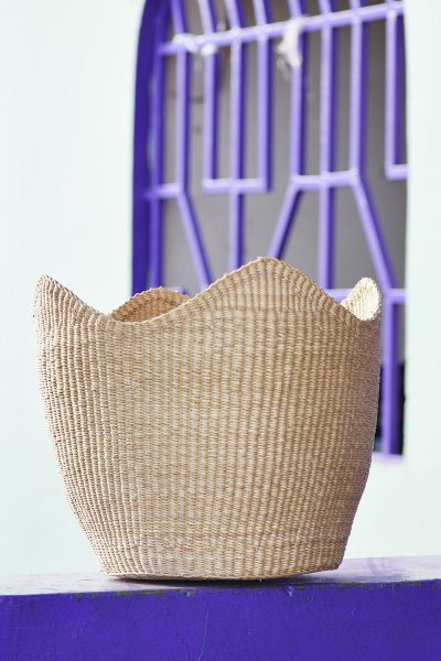 Ghanaian Handwoven Elephant Grass Tulip Basket Bin