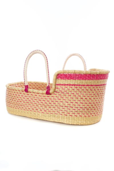 Ghanaian Primrose Moses Basket with Leather Handles
