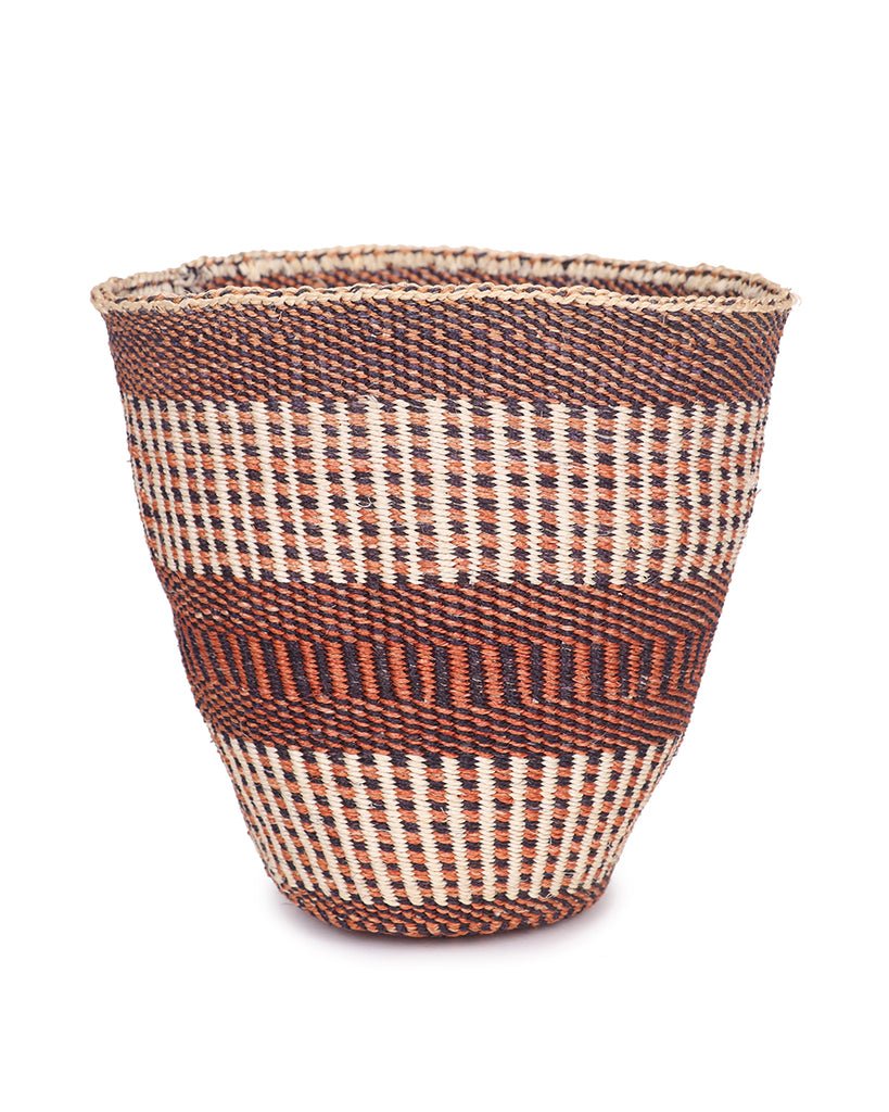 These unique baskets are hand woven from indigenous sisal grass in rural Kenya by women working as part an incredibly creative weaving group. These basket weavers enjoy complete artistic freedom to select the patterns and colours that best showcase their own exceptional talents, empowered by the pay and the flexibility that basket weaving brings. Each basket is her own work of art before it becomes yours and there is only one of each design available.