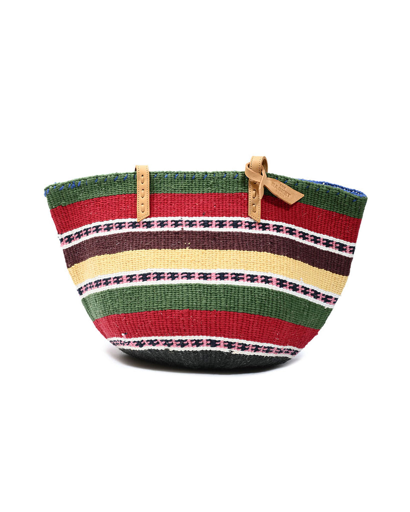 Our exquisite and ethical basket bags are inspired by tribal patterns and traditional Kenyan colourways, and hand woven by members of the Kamba tribe in Kenya. Each basket bag takes up to four days to complete before being sent to a local leather works to be fitted with beautifully supple cow hide straps.