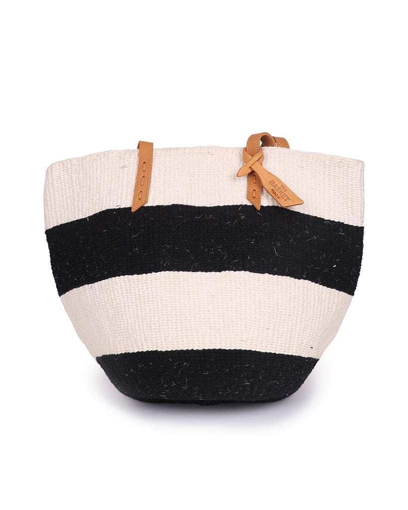Our exquisite and ethical basket bags are inspired by tribal patterns and traditional Kenyan colourways, and hand woven by members of the Kamba tribe in Kenya. Each basket bag takes up to four days to complete before being sent to a local leather works to be fitted with beautifully supple cow hide straps.