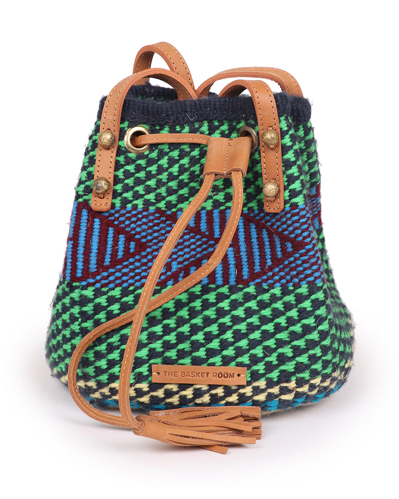 KADADA: Handwoven Green, Blue & Maroon Bucket Bag