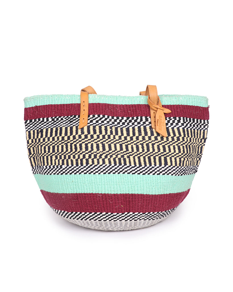 Our exquisite and ethical basket bags are inspired by tribal patterns and traditional Kenyan colourways, and hand woven by members of the Kamba tribe in Kenya. Each basket bag takes up to four days to complete before being sent to a local leather works to be fitted with beautifully supple cow hide straps.