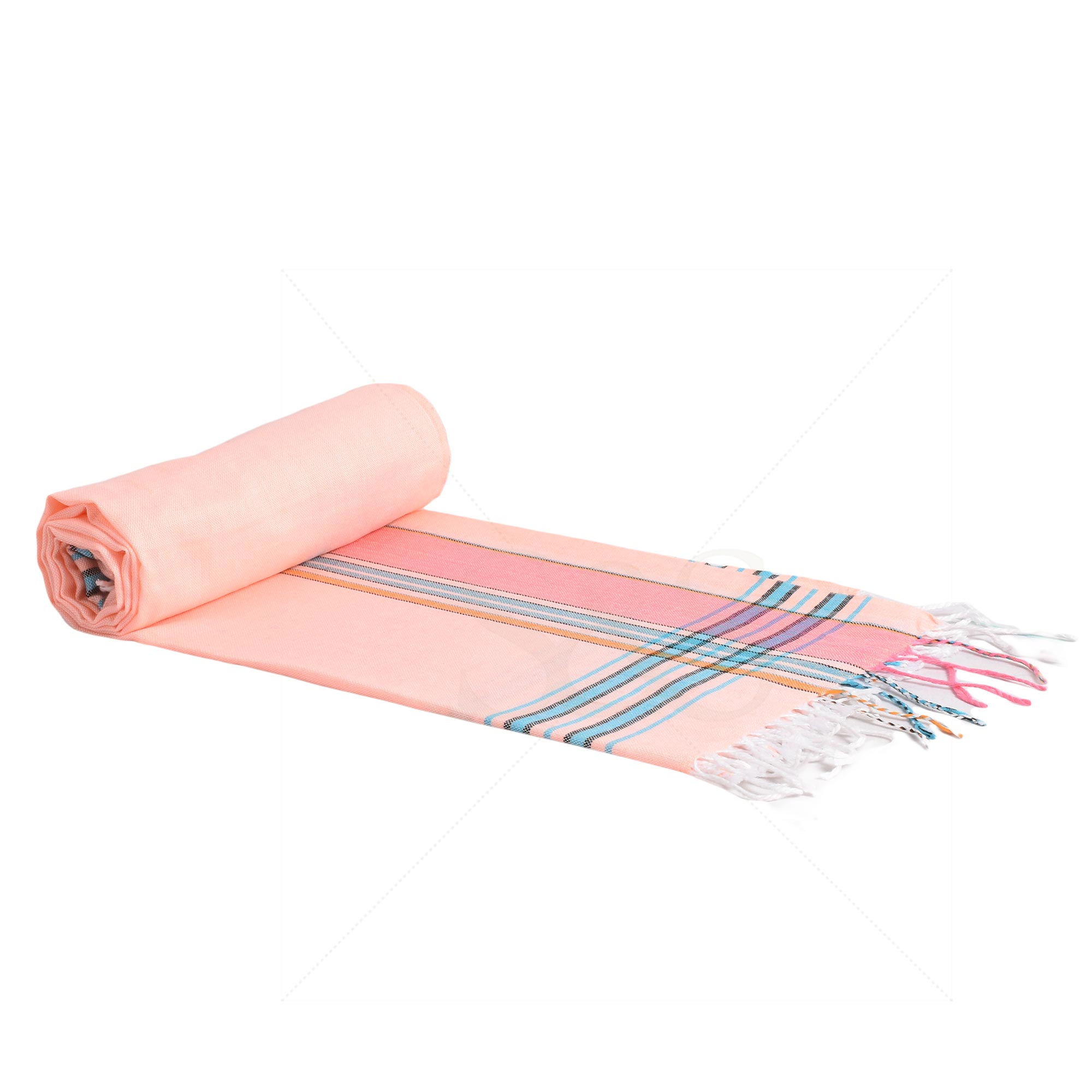 On the beach and beyond, this fresh, multi-functional, and undeniably beautiful kikoy consists of multiple stripes in a range of colours and retains the original border of the traditional kikoy design.
