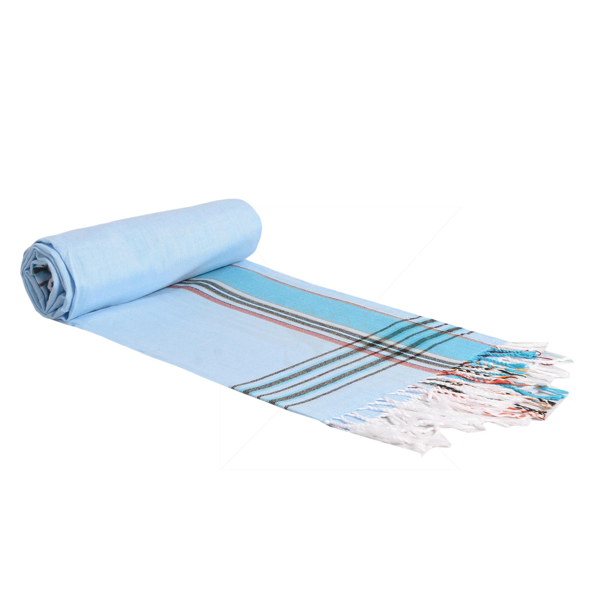 On the beach and beyond, this fresh, multi-functional, and undeniably beautiful kikoy consists of multiple stripes in a range of colours and retains the original border of the traditional kikoy design.