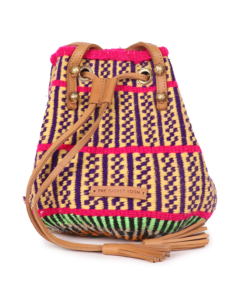 KOHOA: Handwoven Yellow, Pink and Purple Bucket Bag