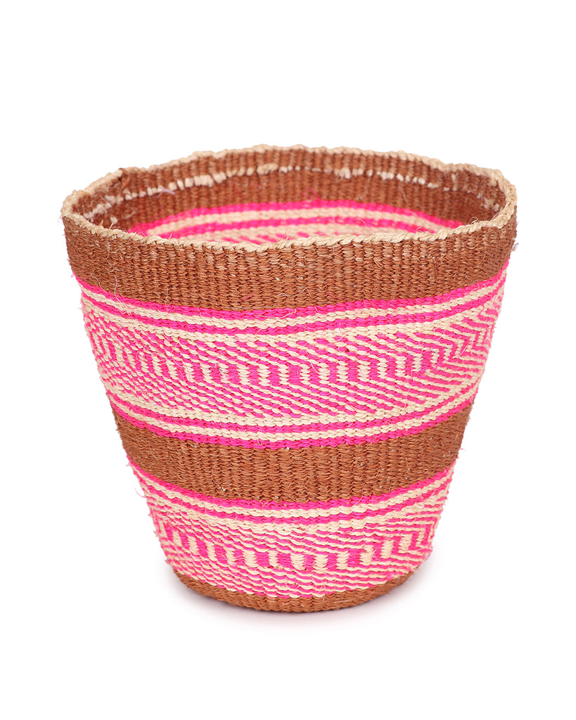 KONDA: Small Pink, Brown & White Sisal Basket