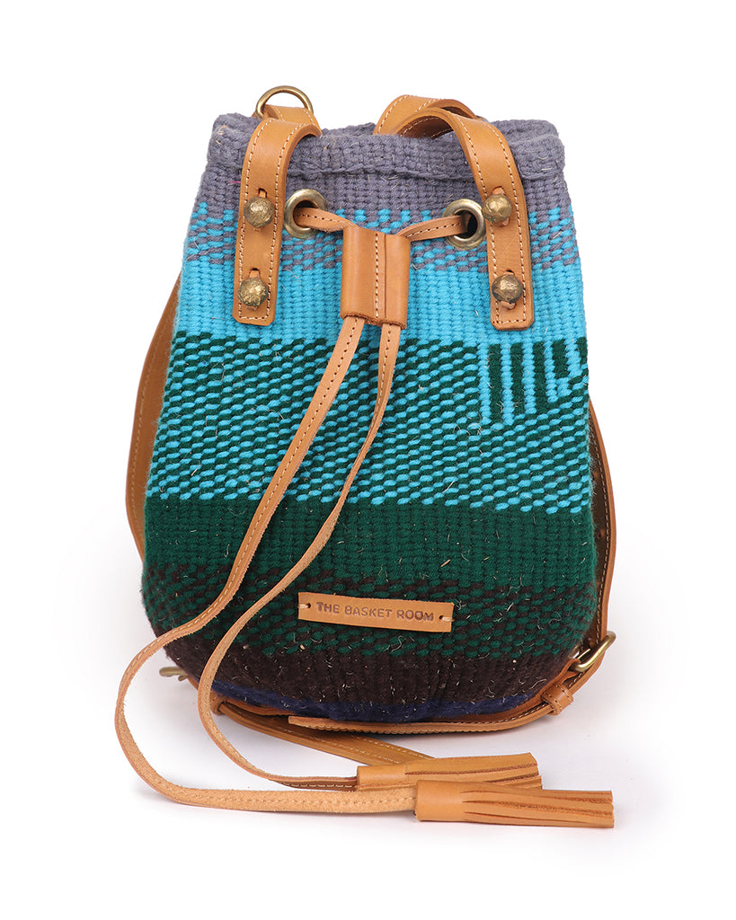 MANYASI: Handwoven Blue, Green & Grey Backpack