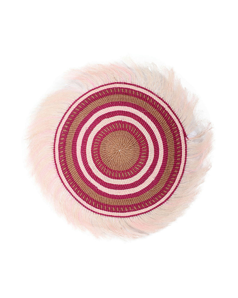 MAVELA: Large Maroon and White Fringed Wall Hanging: 38cm Dia