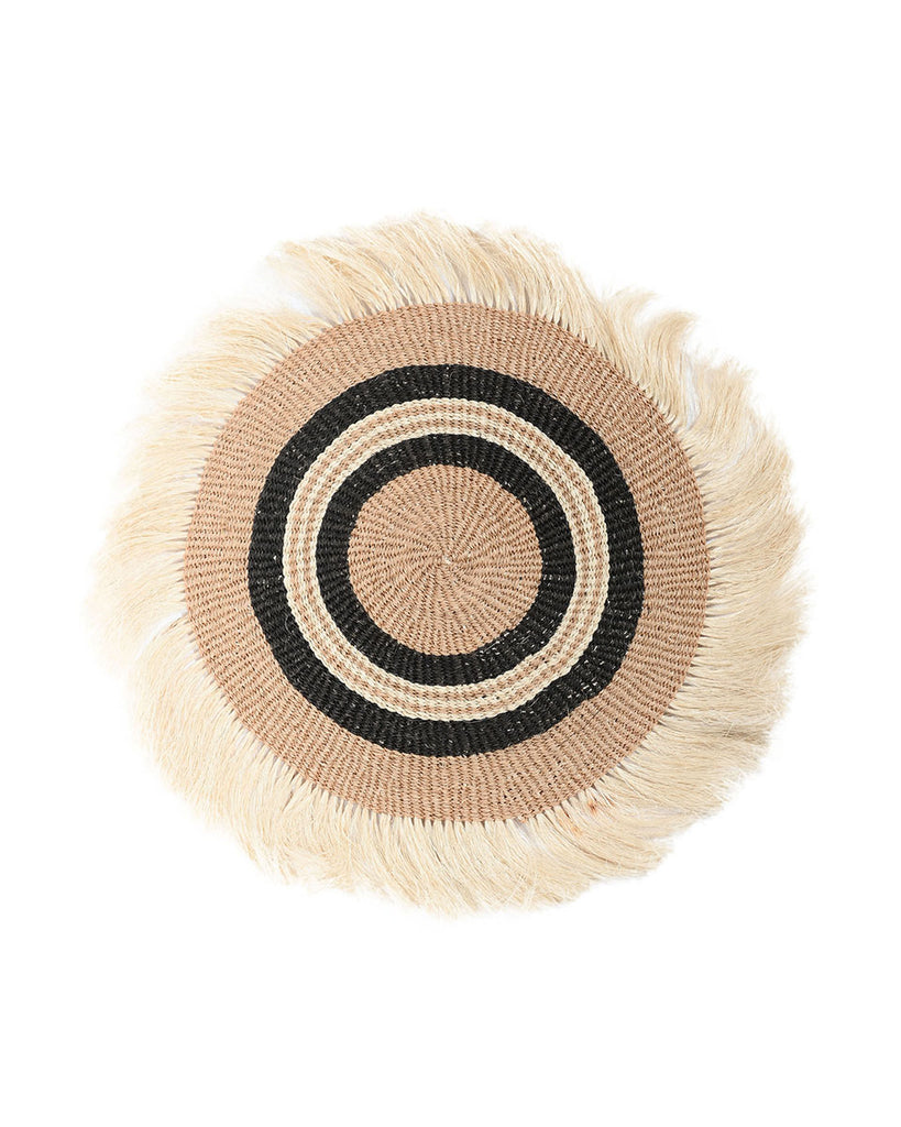 MCHUZI: Large Brown and Black Fringed Wall Hanging: 38cm Dia