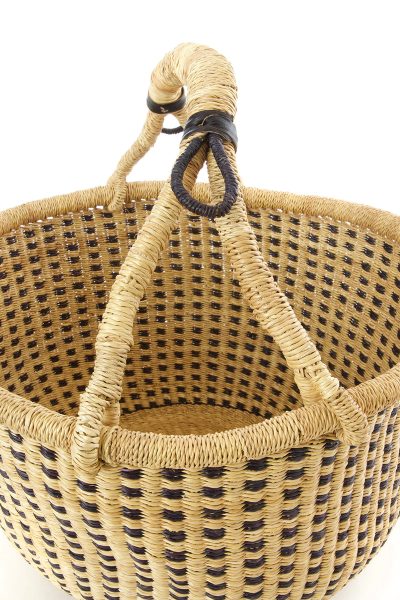 Please note, Bolga baskets are typically crafted with soft goatskin binding the handles. Without leather binding, handles are not as strong.
