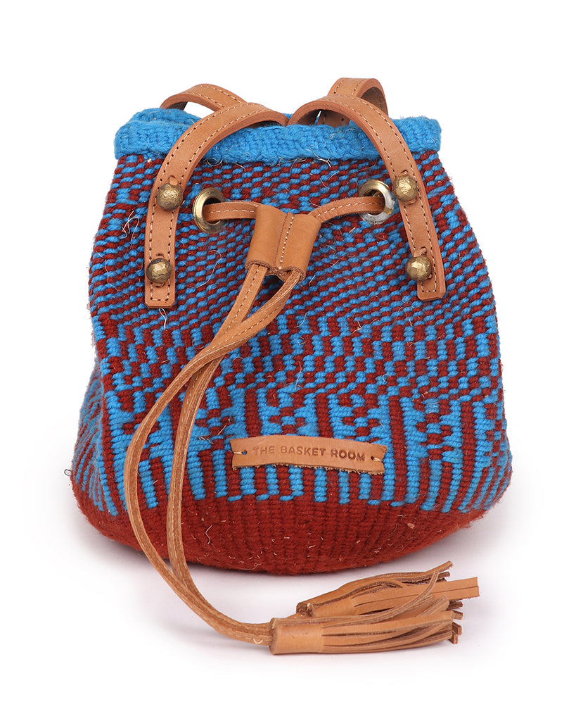 MKOMANI: Handwoven Blue and Brown Bucket Bag