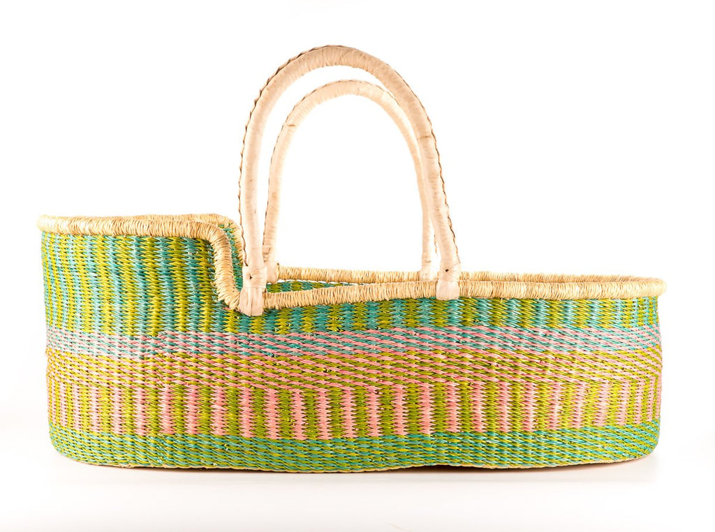 MUNA: Pastel Pink, Mint and Blue Woven Moses Basket