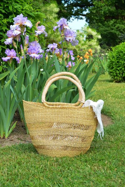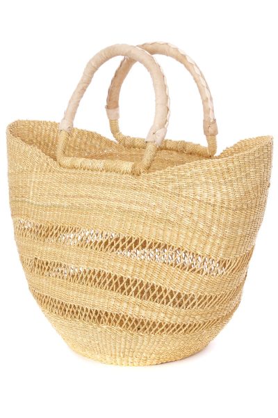 Artisans in the Bolgatanga region of Ghana weave these beautiful and durable shoppers from thick, tough elephant grass. Expertly woven and finished with a soft all-natural leather handle, Bolga shopper baskets stand up to use and abuse and remain functional and beautiful for years.