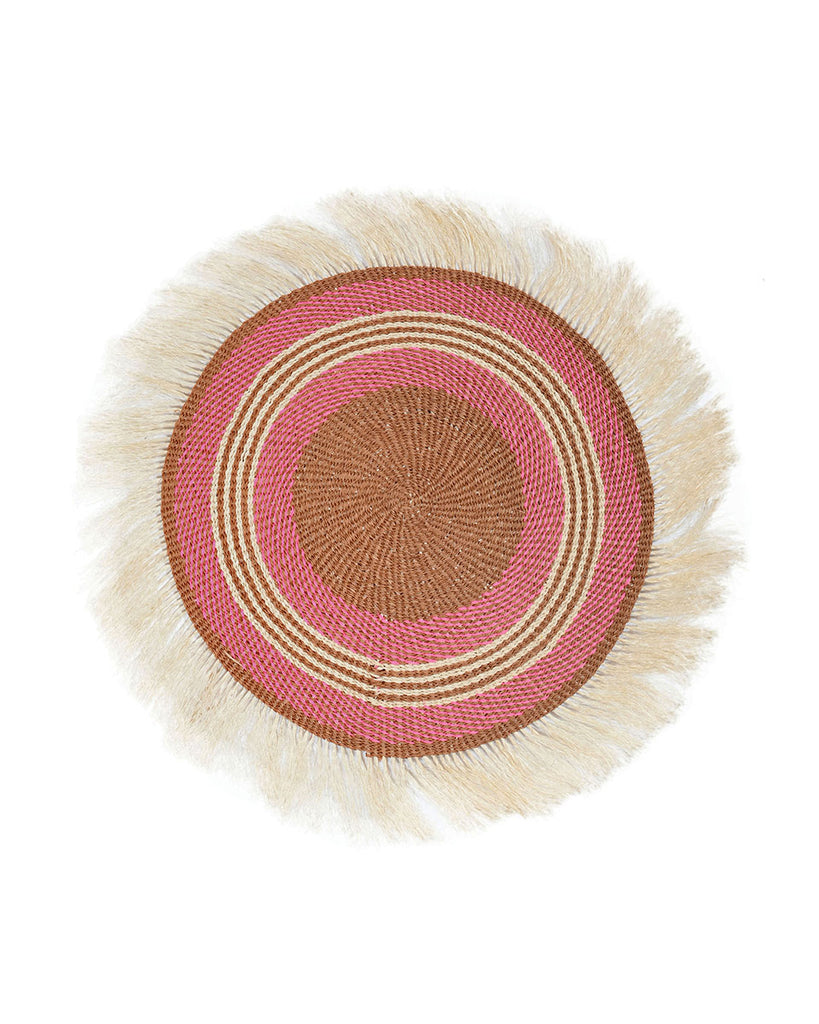 NDANI: Large Brown and Pink Fringed Wall Hanging: 37cm Dia