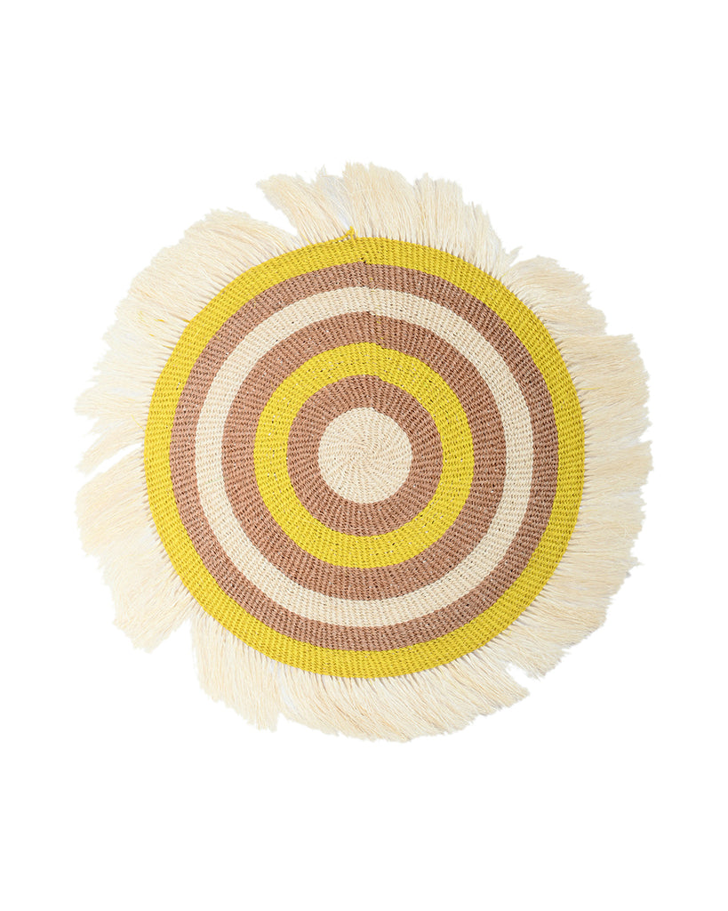 NGANO: Large Brown and Green Fringed Wall Hanging: 37cm Dia