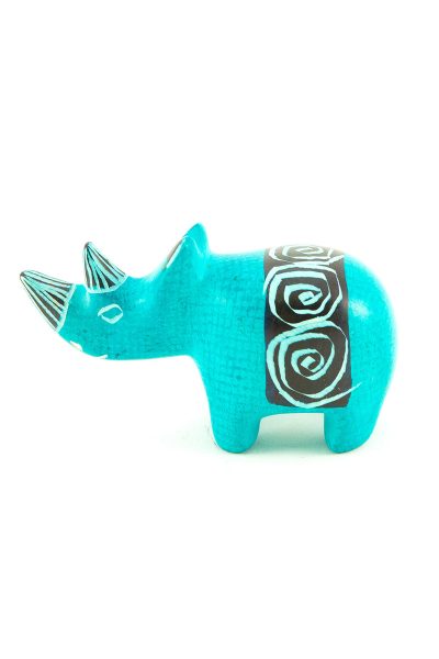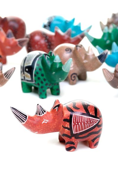 Kenyan artisans hand carve these approachable rhinos from soapstone. Sold by the dozen, each features a different colorful coat.
