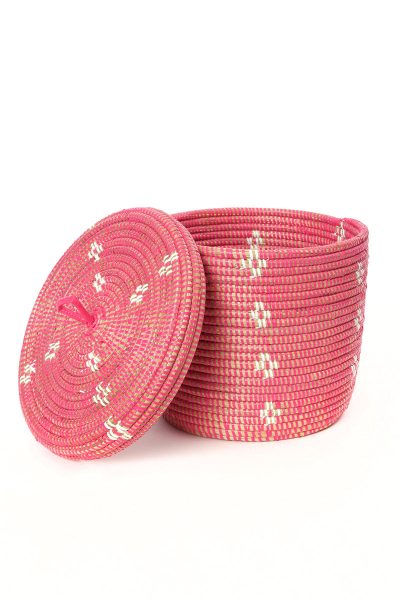 Pink and White Blossom Lidded Storage Basket