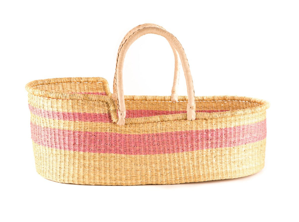 ROSU: Dusky Pink Stripe Woven Moses Basket