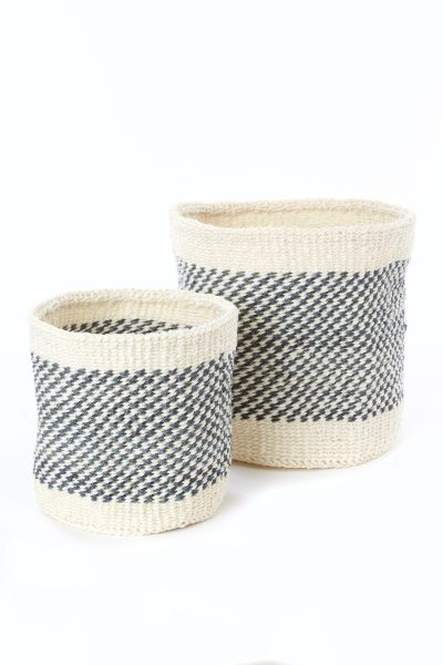 Set of Two Charcoal and Cream Twill Sisal Nesting Baskets