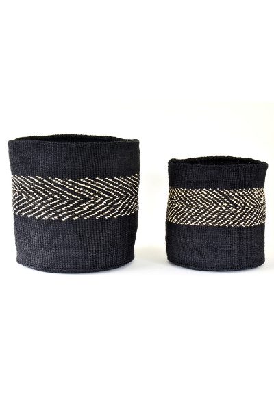 This versatile set of nesting baskets is handwoven by talented rural Kenyan women using strands of hand-dyed sisal and banana fiber. These rustic natural fiber baskets feature bold contrast between rough sisal and earthy, variegated banana leaf fiber.