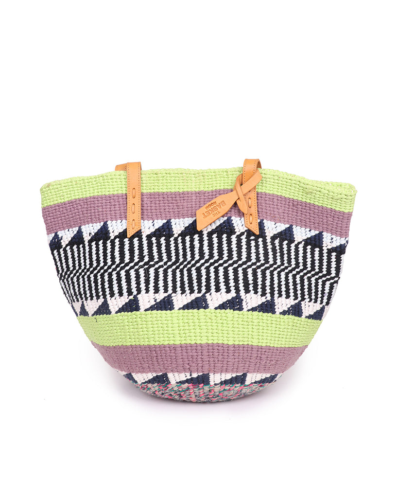 SHAMARI: Handwoven Green , Lilac Wool Tote Bag