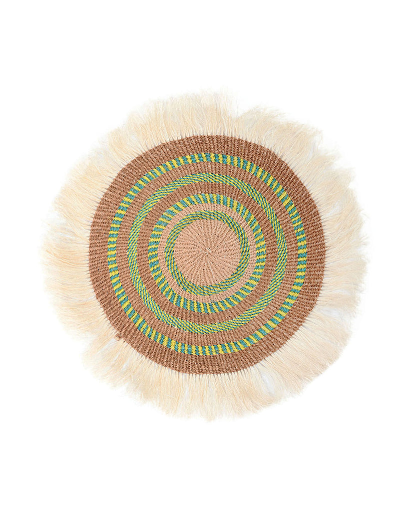 SIAGI: Large Green and Blue Fringed Wall Hanging: 38cm Dia