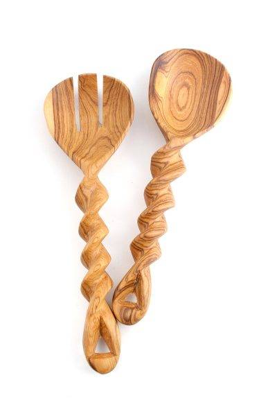 Wild olive wood is a preferred carving medium of Kenya’s Kamba wood carvers. With extreme precision, these talented men draw beautiful serving pieces from the rich grain of this East African hardwood.