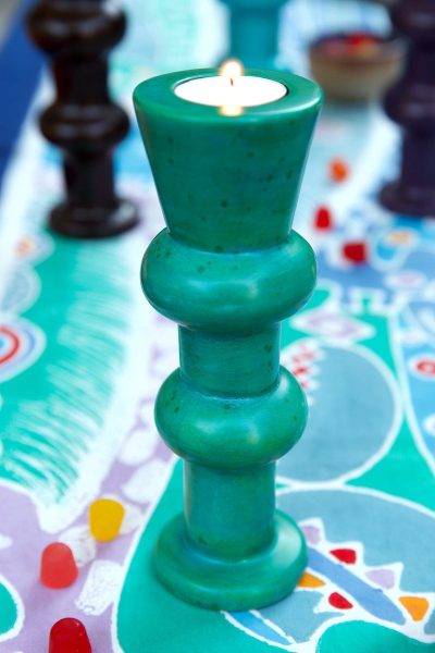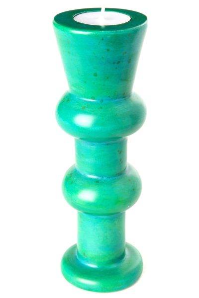 Kenyan artisans hand carve soapstone and add a lovely teal dyed finish to create this contoured candle holder. Sized to hold a tea light candle, the candle holder adds subtle light wherever it is displayed.